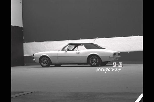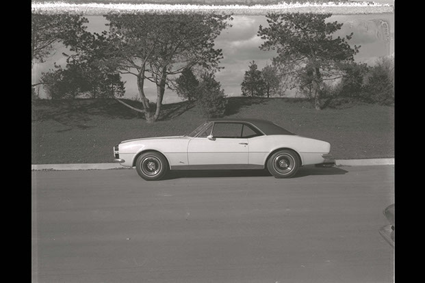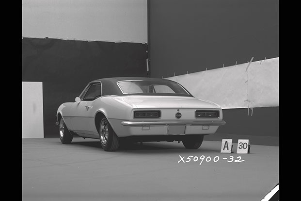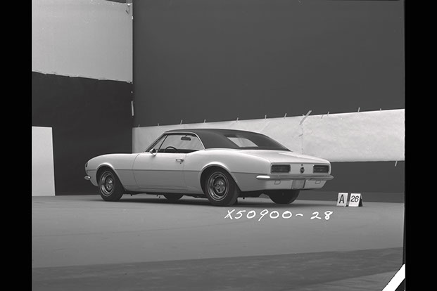 N100029, “The #1 Emblem Test Electro-Maro Car”, was delivered on June 4, 1966 from Fisher Body as coach #DD41D. Like all F-Body Pilot Prototypes at Norwood, it started its hand built assembly in consecutive VIN number order as the twenty-ninth build of the engineering study. One of four on Fleet and Special Order # 5-9 made by Sales Convention Chicago, it carried model # 12637. This yellow on black coupe was the twentieth Camaro coupe ever built. With all four Electrical Drive builds being ordered as “Omit Powertrain”, our research shows all four being delivered to the Technical Center approximately three weeks ahead of schedule. This is derived from dated photos of the #5-9 build at the Technical Center, average elapsed time for all Pilot Prototypes at the Pilot Prototype facility, and the lack of storage space and allotted electrical drive build time. During the initial mock-up of #28…, #29, #30 and #49 were used in a Test Emblem Photographic Study. All three photographic studies were trimmed like XP-836 at the Tech Center. These three photo shoots were taken by GM Styling on a brisk Monday morning, June 20, 1966. It was these three photo studies, some passing muster… others not, that ultimately led to the primary choice of the name Camaro a week later. As evidence in the photos, The Name Panther was passed over, but other aspects were retained. This was the same electrical mock-up program that brought us the Electro-Vaire. Additionally, these photographic studies were the last emblem study prior to General Motor's final expense of $100,000.00 for tooling derived from the name choice. Delivered from the pilot program "Omit Powertrain", it can be evidenced in these photos with the clutch pedal missing, fake mock up Rally Sport / Super Sport adornments, and electrical elements hanging from the sub-frame. This information was uncovered recently and is being released to the public for the first time by this website. Prior to this release, no such program was known to exist. A special thanks to the General Motors Heritage Center, our research team, and all interviewees arranged by author Phil Borris. These four electrical drive builds are the single most historical technical builds in Camaro history. NCRS certificates show #29 being returned to corporate, Zone 0 and it is thought to have been used as a company promotional vehicle shortly after the removal of the “Electric-Drive” unit. Extensive and exhaustive history searches have gleaned no documented ownership history. Current whereabouts and existence is unknown as of 3-1-2015. Only two of the Electro-Maro of the four builds is known to exist. The full story of these four builds can be accessed by the link below.