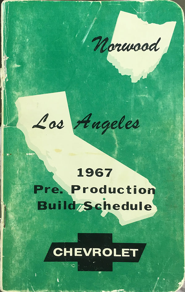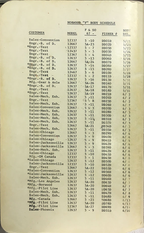 N100013, “The Gear & Axle Test Car”, was delivered on May 31, 1966 from Fisher Body as sub-contracted coach #DD16D. Like all F-Body Pilot Prototypes at Norwood, it started its hand built assembly in consecutive VIN number order as the thirteenth build of the engineering study in a non-descript WWII shipping building at the Norwood, Ohio Chevrolet Plant. This facility was chosen because of security and upper management’s desire to keep this secret project outside the prying eyes of the press and public.