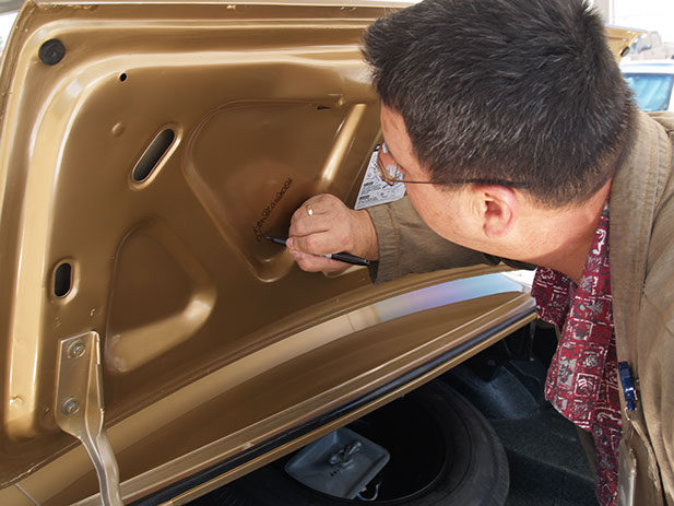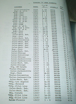 While at Norwood, N100001 was used as a chassis side (Chevrolet) assembly test mule as one would expect with the first “F” car produced. Its first and original 230 cubic inch engine, 3-speed transmission, one of the very last items installed in the car, came right out of standard assembly stock for that time with a motor build date of August 3rd, 1966. The date on the original motor was quite a mystery for a short time as the Pilot Prototype data book for N100001 indicated a preference ship date as 8-1-66. Additional research with the NCRS, however, quickly solved this mystery as the NCRS official “production record”(generated directly from the original GM shipping records) list the car with an official production date of 8-10-66, so the delivery date to the initial destination on Cass Avenue in Detroit was delayed by 10 days. A basic understanding of the relationship between the term ”official production date” and the relationship to the shipper date is required. The shipper date was the date when the car was considered “released to the shipper” and all production/repair was technically complete. This date had to be very accurate when the shipper took possession of the product; therefore the official production date designation