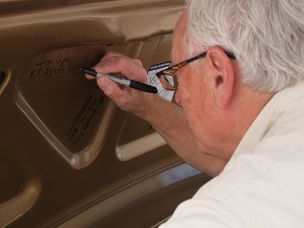 Within weeks of the completion of the restoration and with all ownership history procured, the owners reached out to the GM Heritage Center for help uncovering any early factory documentation. With the personal touch of Christo Datini…….an introduction to Phil Borris ensued. Phil and Jim Seim were able to provide early factory documentation of the build, as well as information thought to be lost previously. The car was invited to a local UAW Retirees convention and everyone met personally for the first time. Ceremoniously, the car was unveiled to GM Norwood employees yet again, for the second time as the now restored build, came full circle…