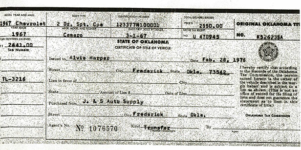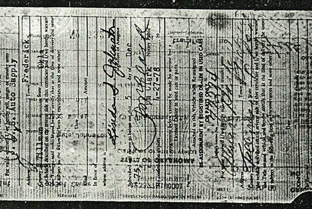 J.S. Auto Supply of Frederick, Oklahoma took just under three months to sell the car……..again, for full sticker……, the purchase price to the second owner being the same amount that was paid for the car new. It is clear again that both parties knew the significance of VIN number seven years later when delivery was taken. The used car dealership was owned by Jerry Strickland and