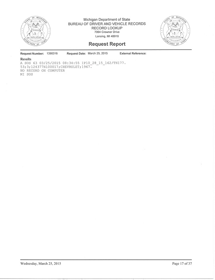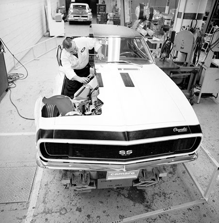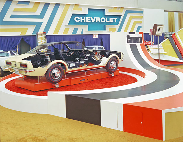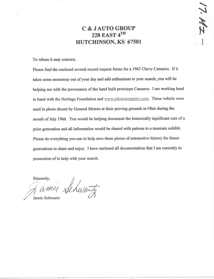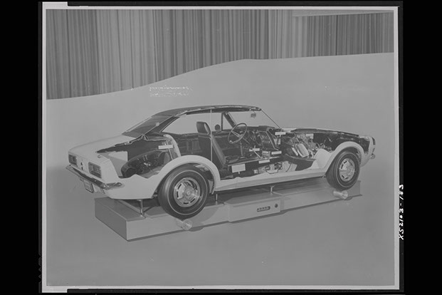 N100017, “The Cut-Away Car”, was delivered on June 2, 1966 from Fisher Body as coach #DD24D. Like all F-Body Pilot Prototypes at Norwood, it started its hand built assembly in consecutive VIN number order as the seventeenth build of the engineering study. One of eleven on Fleet and Special Order # 5-11 made by Sales Mechanical Exhibit, it carried model # 12637. This yellow on black coupe was the twelfth coupe ever built. With a 350 cubic inch power plant and a standard 4-speed transmission, its extensive presence in the General Motors Jam Handy Video, photo shoots at the Detroit Auto Show and lengthy use in photographic display of sales literature make it the most highly documented Pilot Prototype Camaro that was undoubtedly destroyed. It was required to be received by J. MacQuaid at Chevrolet Flint Manufacturing… (as soon as possible), for a cut-away viewing display. Like all of the eleven builds for the mechanical exhibit it was built “Omit Undercoat” for ease and desirability of publicity photos. NCRS certificates show #17 being returned to corporate, Zone 0, where it is thought to have been destroyed after lengthy use in displays. Extensive and exhaustive history searches have gleaned no documented ownership history. Current whereabouts and existence is unknown as of 3-1-2015.