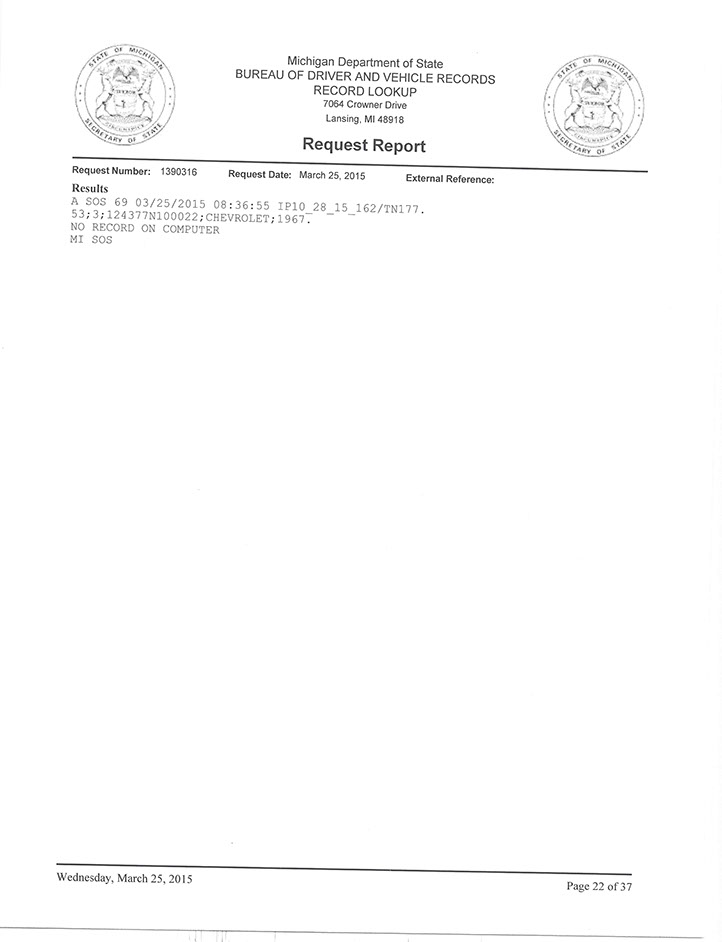N100022, “The #2 Magazine Test Photo Car”, was delivered on June 3, 1966 from Fisher Body as coach #DD30D. Like all F-Body Pilot Prototypes at Norwood, it started its hand built assembly in consecutive VIN number order as the twenty-second build of the engineering study. One of eleven on Fleet and Special Order # 5-11 made by Sales Mechanical Exhibit, it carried model # 12637. This yellow on black coupe was the fifteenth coupe ever built and the “Second Magazine & Newspaper Test Photo Car”. With a 350 cubic inch power plant and a standard 4-speed transmission, its extensive use as a press tool was exhaustive. The “Magazine Test Photo Cars” were on elevated display for ease of photography in the same program as the “Ride & Drive Cars”. It was required to be received by J. MacQuaid at Chevrolet Flint Manufacturing on or around June 20, 1966 for display use. Like all of the eleven builds for the mechanical exhibit it was built “Omit Undercoat” for ease and desirability of publicity photos. NCRS certificates show #22 being returned to corporate, Zone 0 and it is thought to have been used as a company promotional vehicle shortly thereafter. Extensive and exhaustive history searches have gleaned no documented ownership history. Current whereabouts and existence is unknown as of 3-1-2015.