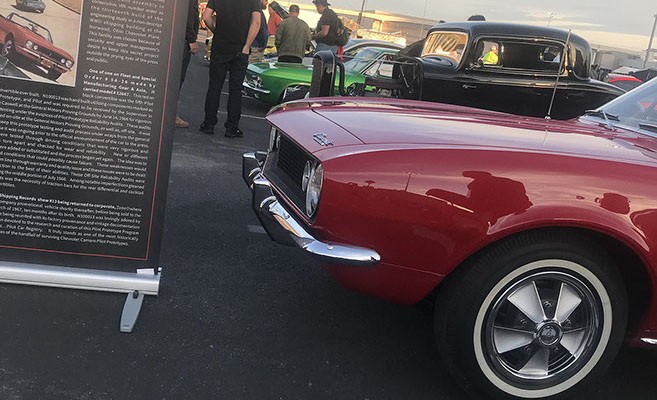 Prototype, as a sponsored exhibit of Chevrolet at the 2017 SEMA Show. Pilot Car Registry worked closely with National Show Director, Sean Finegan of Chevrolet. This week marked the seventh time that Pilot Car Registry was invited and attended a General Motors Event to showcase the knowledge held within this website. In addition to being on display all week, Pilot Car Registry and N100013 were showcased live on Velocity Channel as a vehicle of historical importance. Fortunately in 2017, the dates of the SEMA show didn't correspond with Finals dates at Cal Poly and our Founder, Logan Lawson was able to attend. During this show, Logan was able to begin the process of authenticating two additional Chevrolet Pilots....a 1970 Chevrolet SS Chevelle and a 1967 Chevrolet Chevelle. It would seem that our research has begun to catch on, because additional owners are beginning to surface. The event was attended by Logan Lawson, Corey Lawson, and Jamie Schwartz of Pilot Car Registry. The highlights of the week were the Velocity Channel coverage and the exit processional parade through the grounds of the SEMA Show......this show never seems to disappoint.