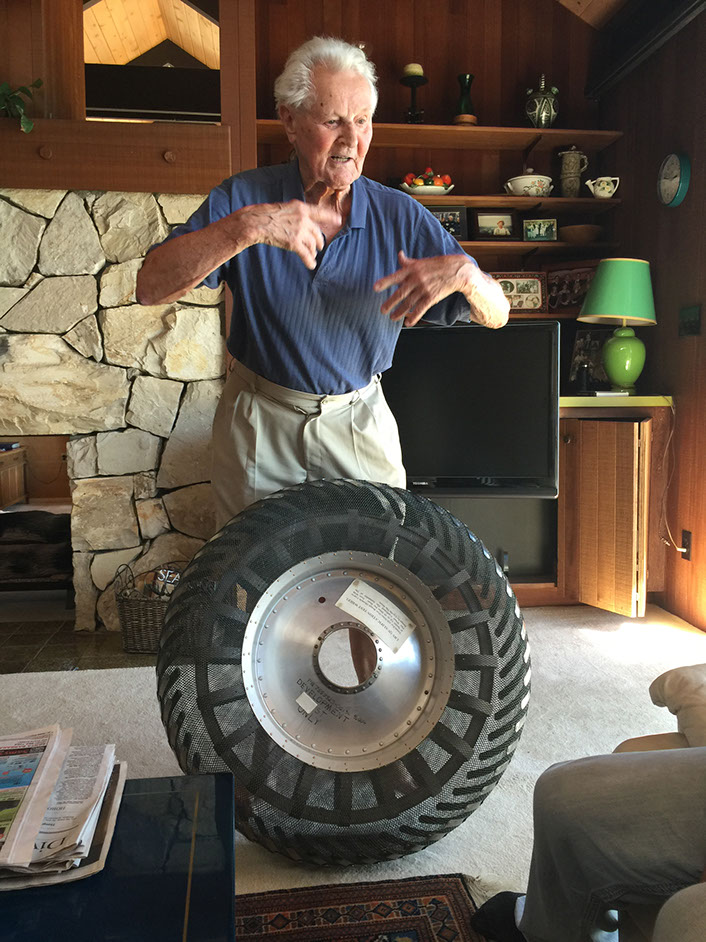 In the early years of World War II, Tom was transferred to Detroit and worked in the same tank mobility division as Ferenc Pavlicks, one of the men currently credited with the design and build of the Apollo Lunar Rover. (A full biography of Mr. Pavlicks from our personal interview can be viewed on the Aerospace page of this site and he is pictured below.) Ferenc was tasked with soil testing while Tom was dutifully designed to train personnel how to service the new designs. They ultimately achieved a tank with wheels on the front and a tracking system on the rear that could be driven at higher rates of speed and was more