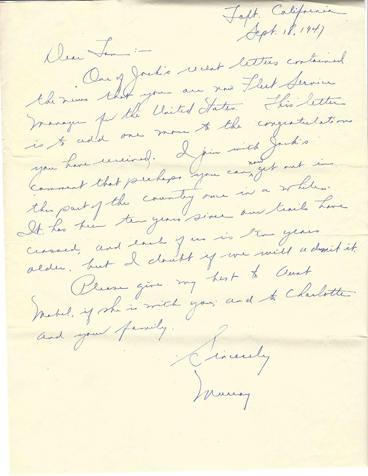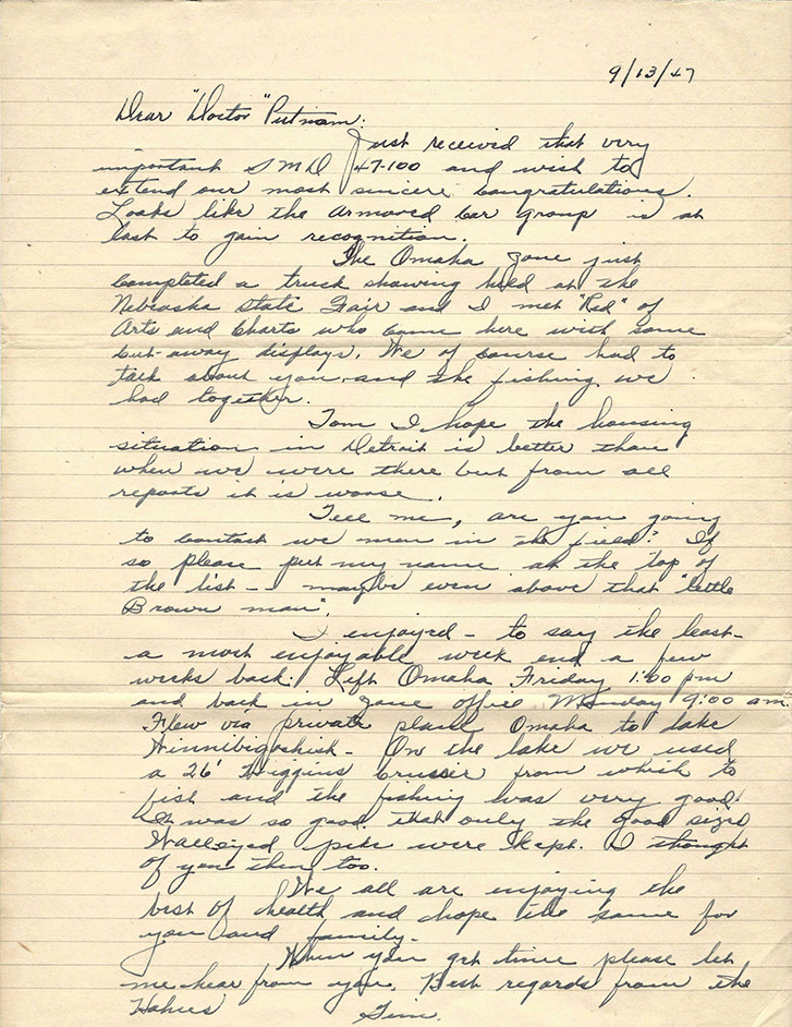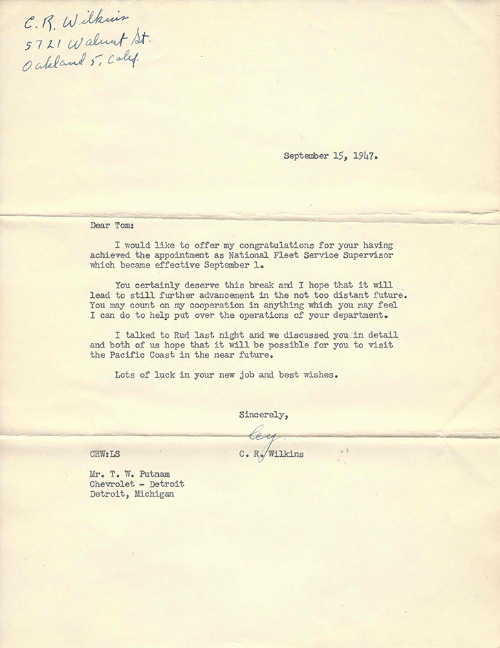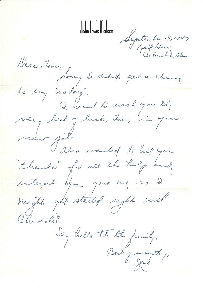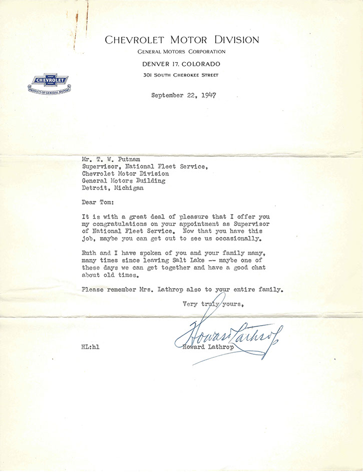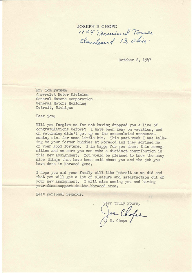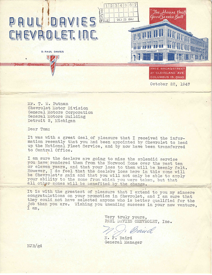 After the war, Tom was promoted to National Service Director and remained in Detroit. His image graces many historical documents and General Motors functions throughout his tenure.