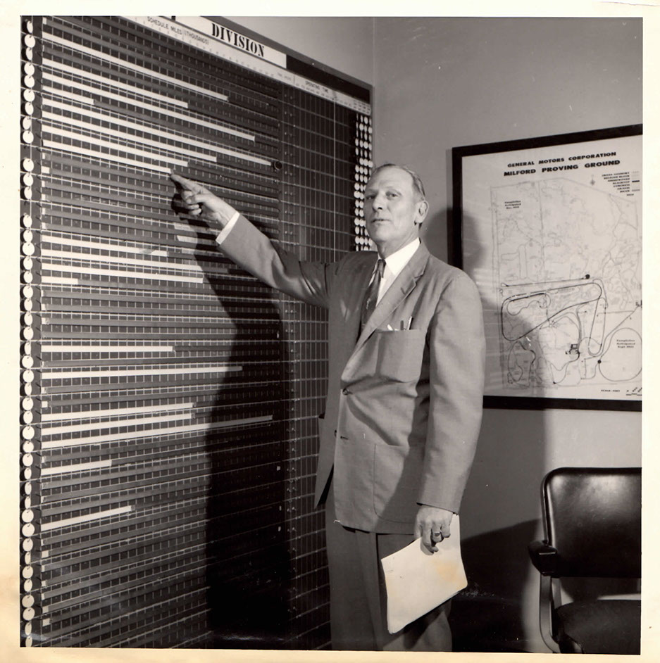 He was hired by the General Motors Proving Grounds as a test driver in 1927 at the age of 25. He worked hard and advanced among the ranks of the employees at the Milford Proving Grounds. He was known as a "hard charging" Company man that was feared and respected. During the war years, he specialized in the testing of military vehicles, tanks, and jeeps. His aptitude for engineering testing of these vehicles led to several trips to Alaska for the military when heavy duty trucks were being tested. It was during this time that he was promoted to Assistant Staff Engineer.
