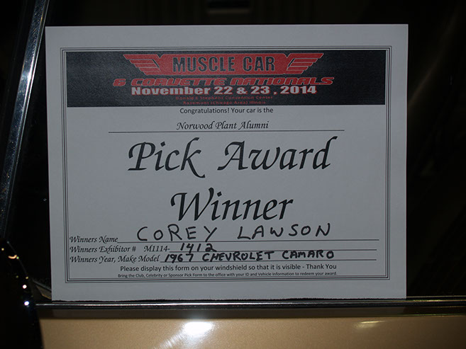 N100001 and Pilot Car Registry were invited and displayed at Muscle Car and Corvette Nationals during November of 2014. News outlets picked up on the significance of the display and publicized it in the months preceding. Close friendships were made with all the Norwood Plant Alumni Ambassadors and a subsequent “Pick Award” ensued. Pilot Car Registry was represented by Corey and Logan Lawson, Jamie Schwartz, Trudy Lawson, and Phil and Vi Borris. A photographic history follows.