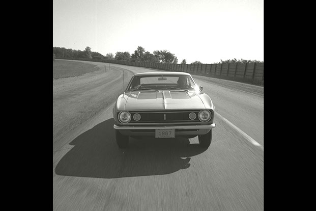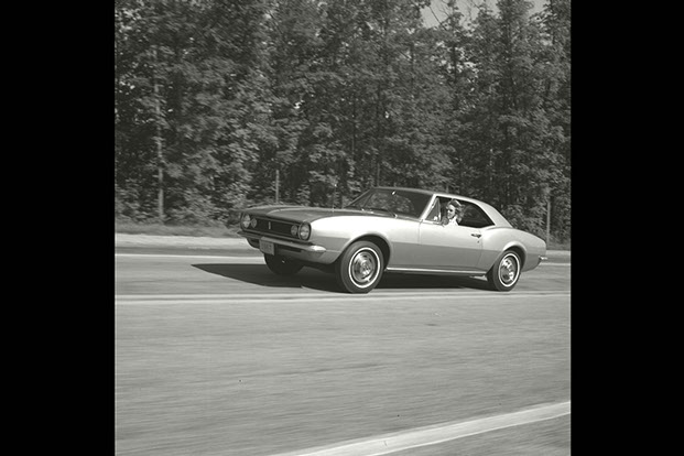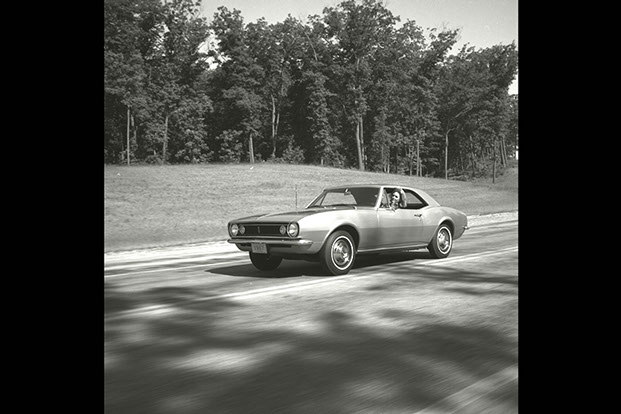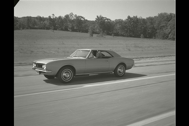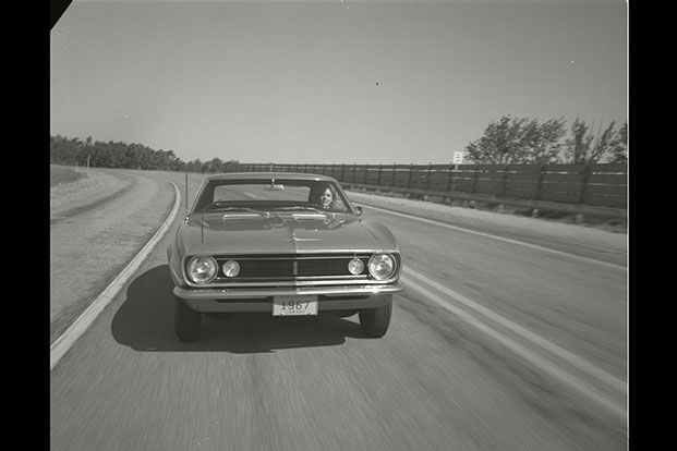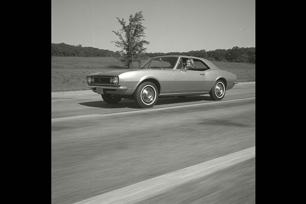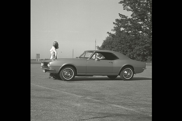 With the sales convention complete in Detroit for the release of the 1967 Camaro to the Chevrolet dealers of the world, affectionately known as “Men of action”, N100001 was shipped to the Tech Center in Warren, Michigan for a photo shoot that would include press release photos in still photography, as well as, color Jam Handy promotional videos to be used by General Motors. N100001 can be recognized in multiple photographic forms gracing the images with its signature “1967” vanity plates. Curiously, the car appears with and without the single, small block letter emblem used on the deck lids and headers on the front fenders. With no holes drilled for this build, it is thought that these graces were applied with a small amount of double sided tape and removed. Shortly after this shoot, press release photos were circulated across the country to newspapers around September 8, 1966 for the new Camaro roll out at local dealerships for the end of the month of September.