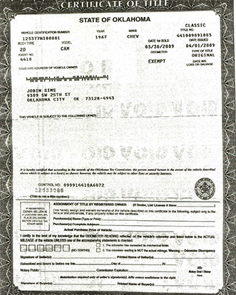 J.S. Auto Supply of Frederick, Oklahoma took just under three months to sell the car……..again, for full sticker……, the purchase price to the second owner being the same amount that was paid for the car new. It is clear again that both parties knew the significance of VIN number seven years later when delivery was taken. The used car dealership was owned by Jerry Strickland and