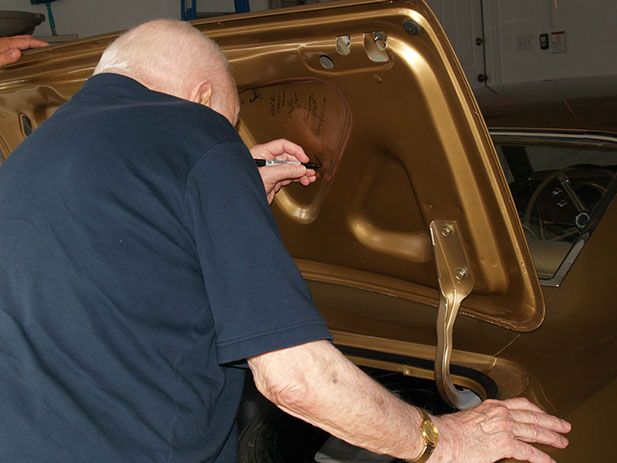 Within weeks of the completion of the restoration and with all ownership history procured, the owners reached out to the GM Heritage Center for help uncovering any early factory documentation. With the personal touch of Christo Datini…….an introduction to Phil Borris ensued. Phil and Jim Seim were able to provide early factory documentation of the build, as well as information thought to be lost previously. The car was invited to a local UAW Retirees convention and everyone met personally for the first time. Ceremoniously, the car was unveiled to GM Norwood employees yet again, for the second time as the now restored build, came full circle…